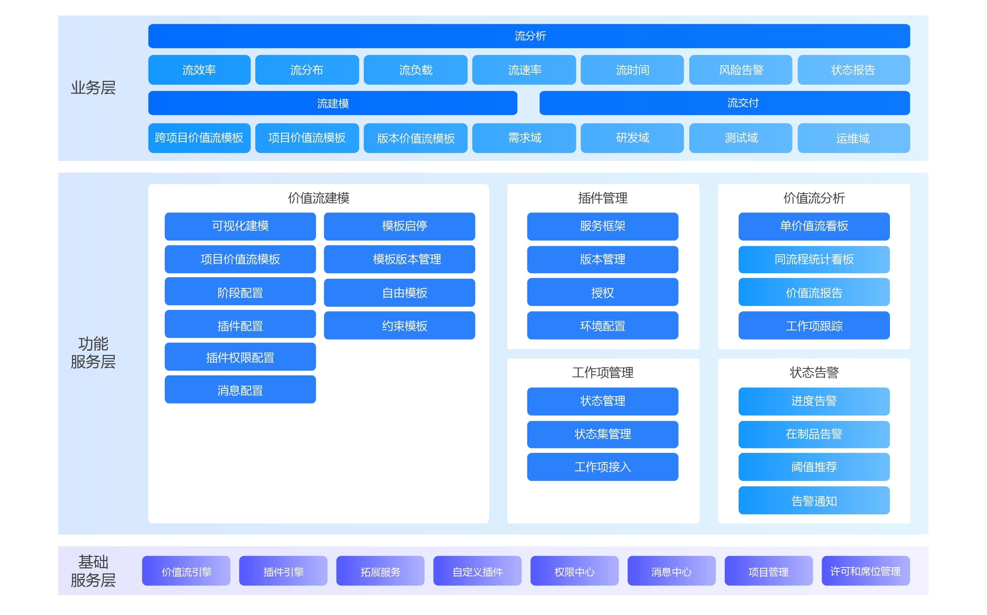 ● 插件库:提供自定义插件能力,定义了一套工作项流转和跨工具操作集成的接口规范,支持用户通过插件打通单点工具的操作层和数据层,并基于操作驱动工作项流转、跨工具的自动化联动。