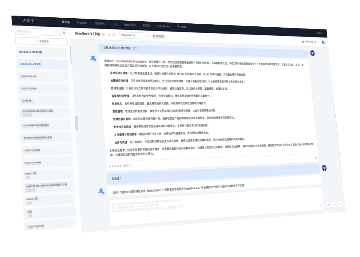 大模型层:用于对接公有云或私有化部署的基础大模型,以及Embedding向量化模型。国内外商业或开源基础大模型还在持续快代,每个季度都会有能力更强、效果更好的大模型或新版本出来,如DeepSeek R1在2025年春节的火爆。平台默认支持公有云接口和私有化部署2种模型服务集成方式,内置60多种常见模型适配器,可以分钟级切换效果更好的基础大模型。