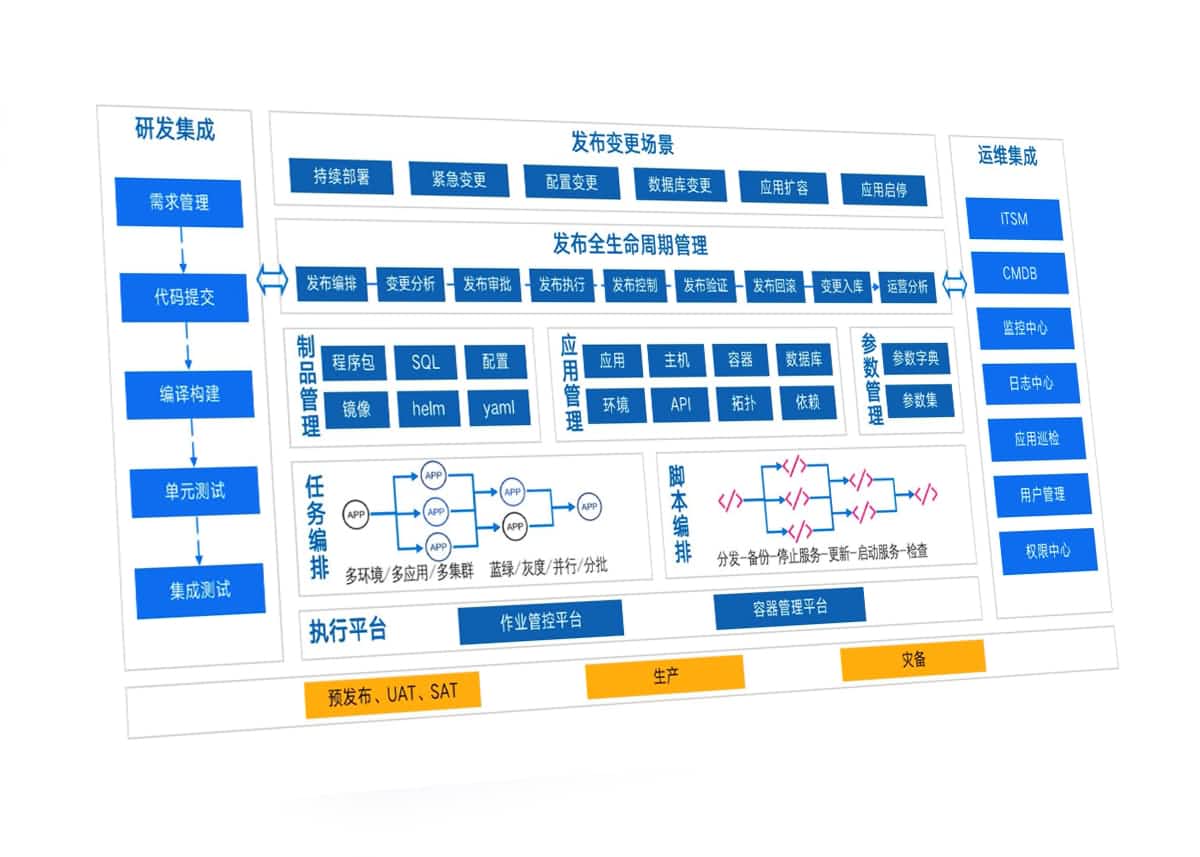 提供灵活的发布流水线编排引擎,支持多业务多步骤多类型的业务发布,支持进行程序包更新、配置文件下发、容器发布、Helm发布、SQL命令执行; 支持灵活的串行/并行发布、滚动分批发布、定时发布、发布暂停等方式。