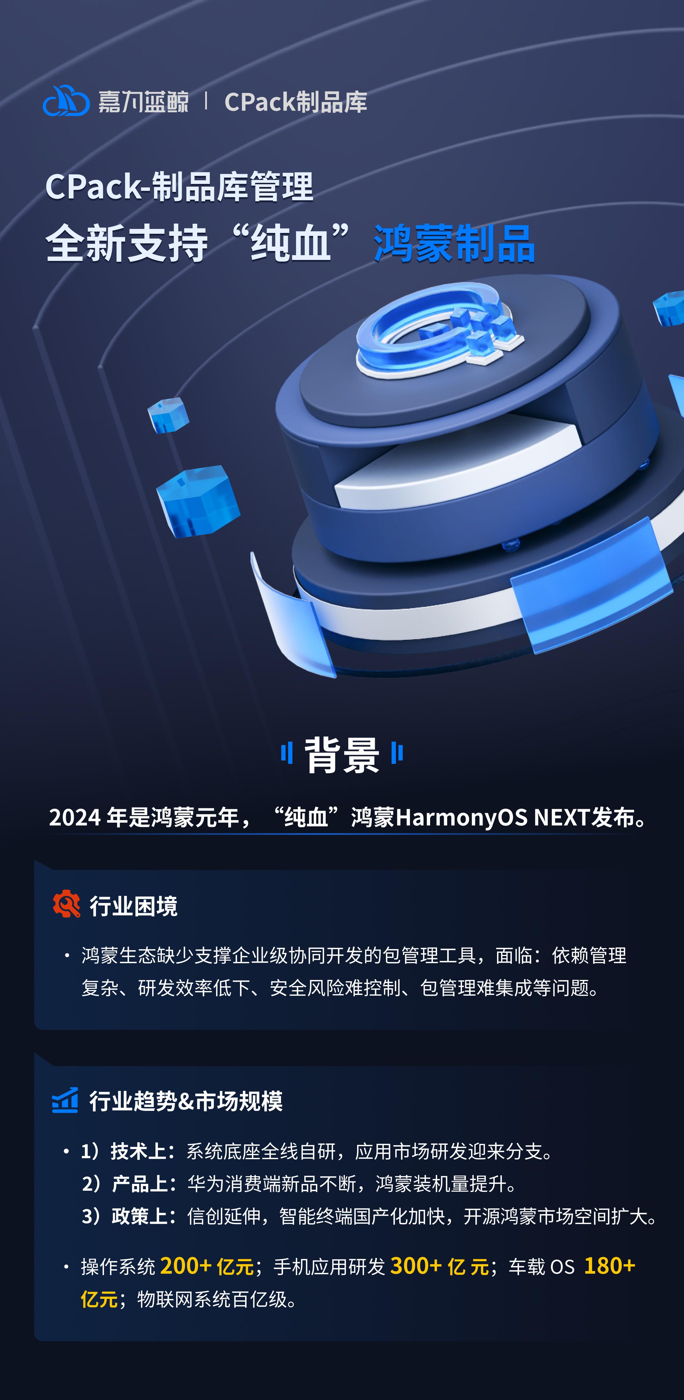 嘉为蓝鲸CPack制品库:全新支持“纯血”鸿蒙制品