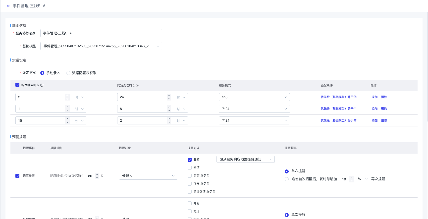 发布服务时,可在设定的时间内去完成服务协议所绑定的节点,如:a、b节点绑定了服务协议,约定1小时解决,则a、b节点的处理人需要在1小时内完成节点处理信息,否则将超时。