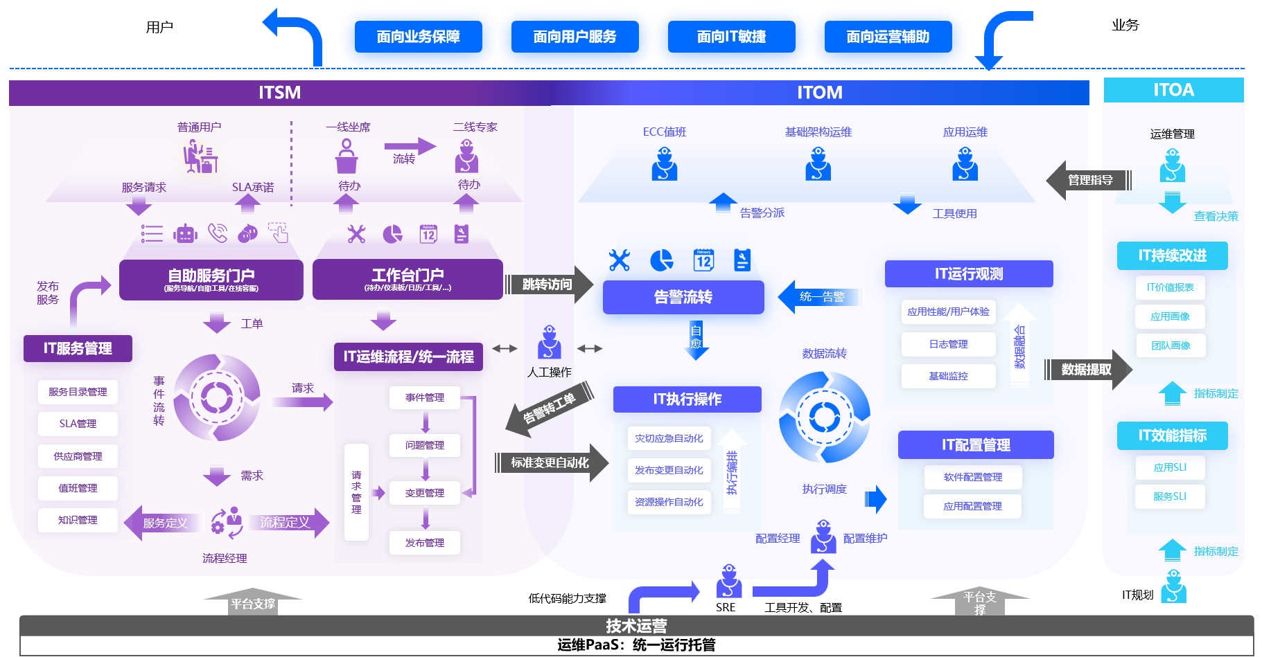 WeOps不仅限于ITSM,致力于实现IT服务、IT流程与运维管理融合的一体化解决方案。