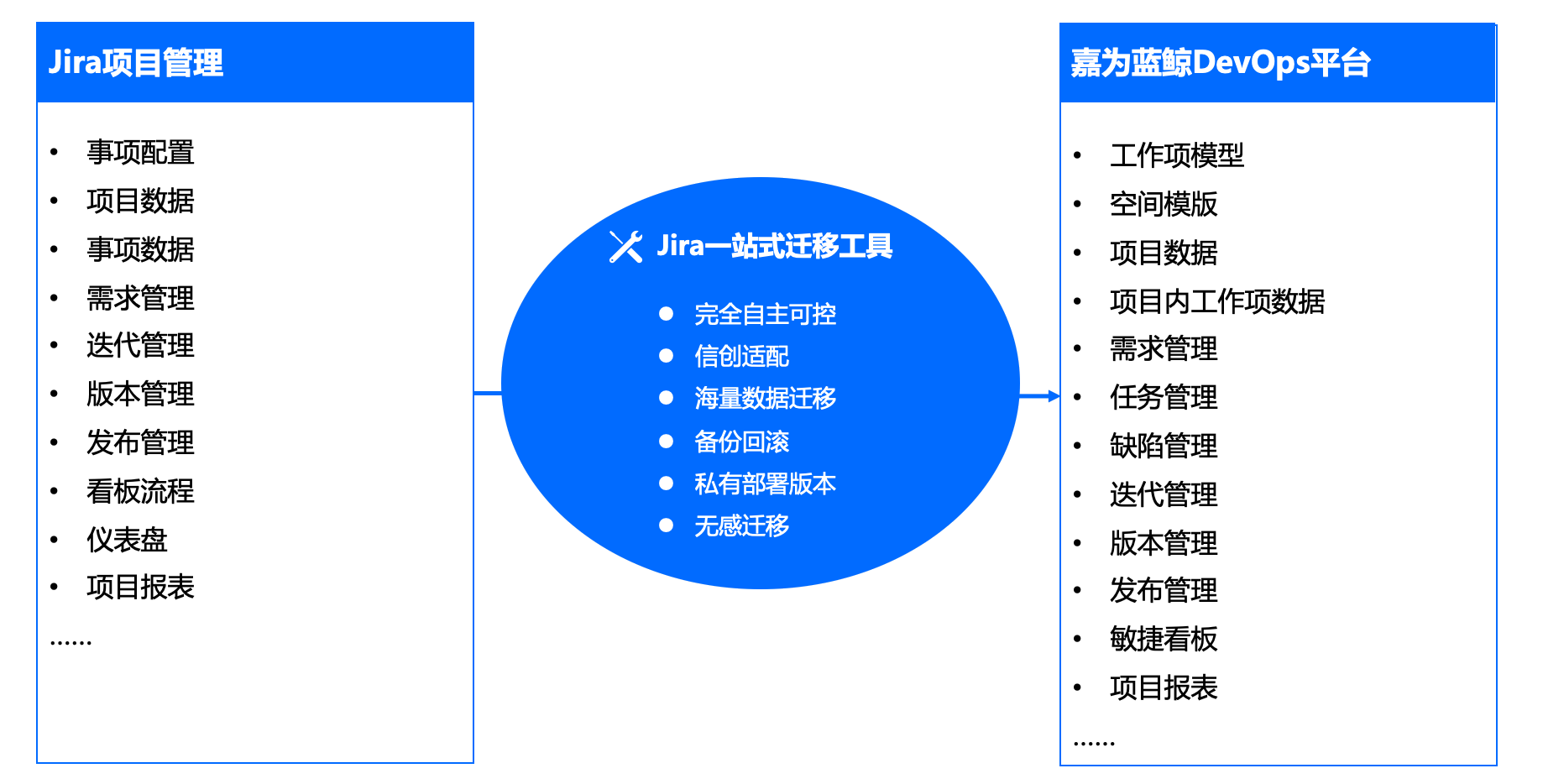 迁移工具知识产权100%归属嘉为蓝鲸,满足信创自主化标准;迁移前自动备份Jira原始数据,支持一键回滚,化解企业迁移顾虑。