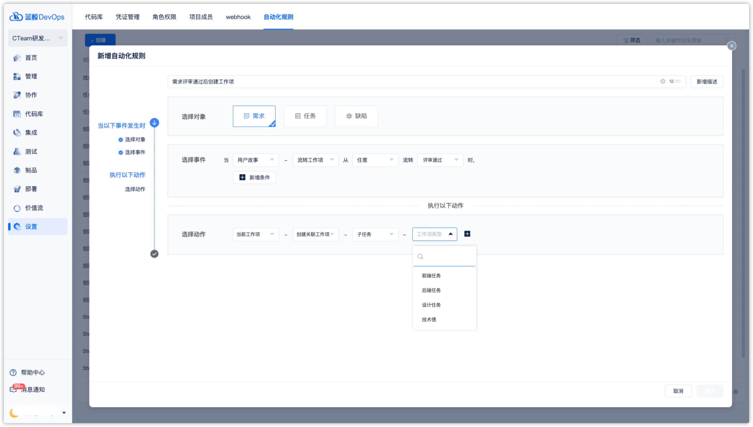 2)研发任务自动创建