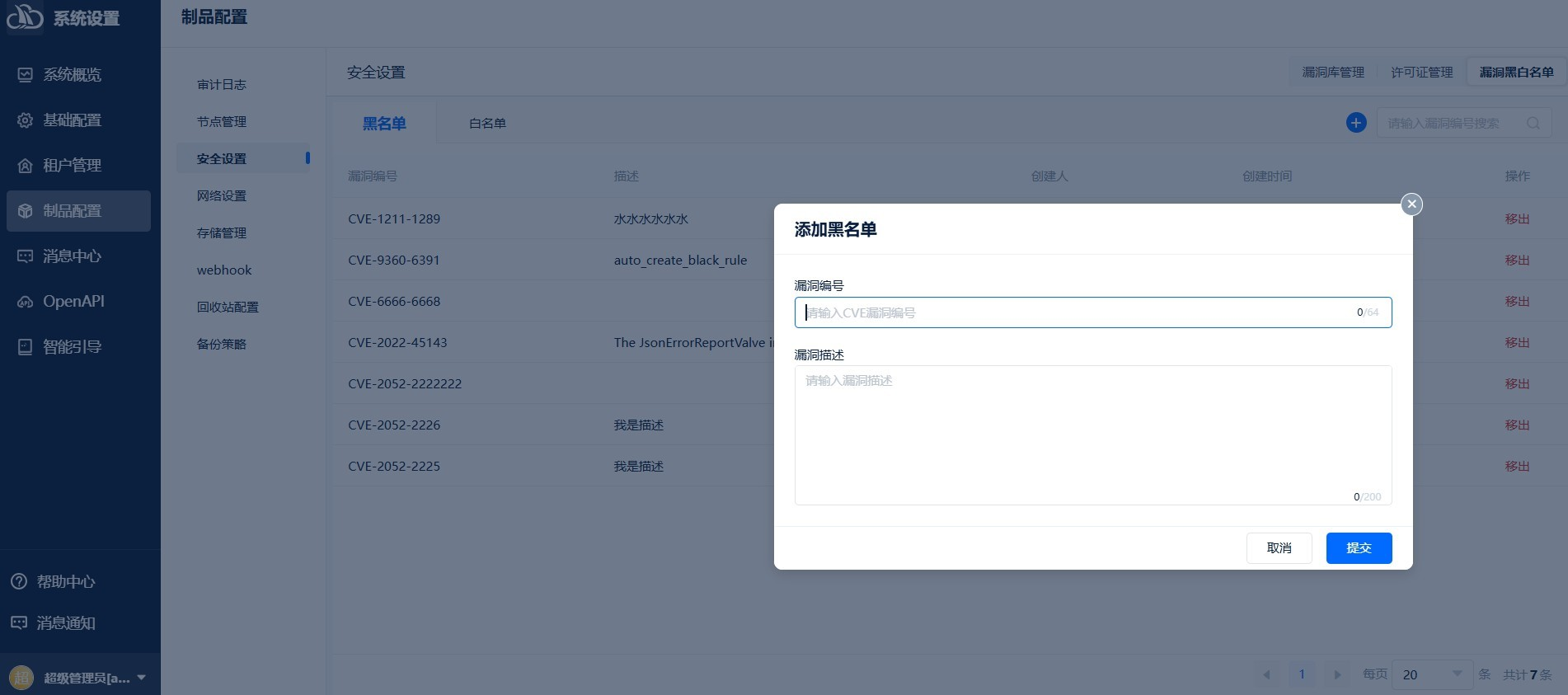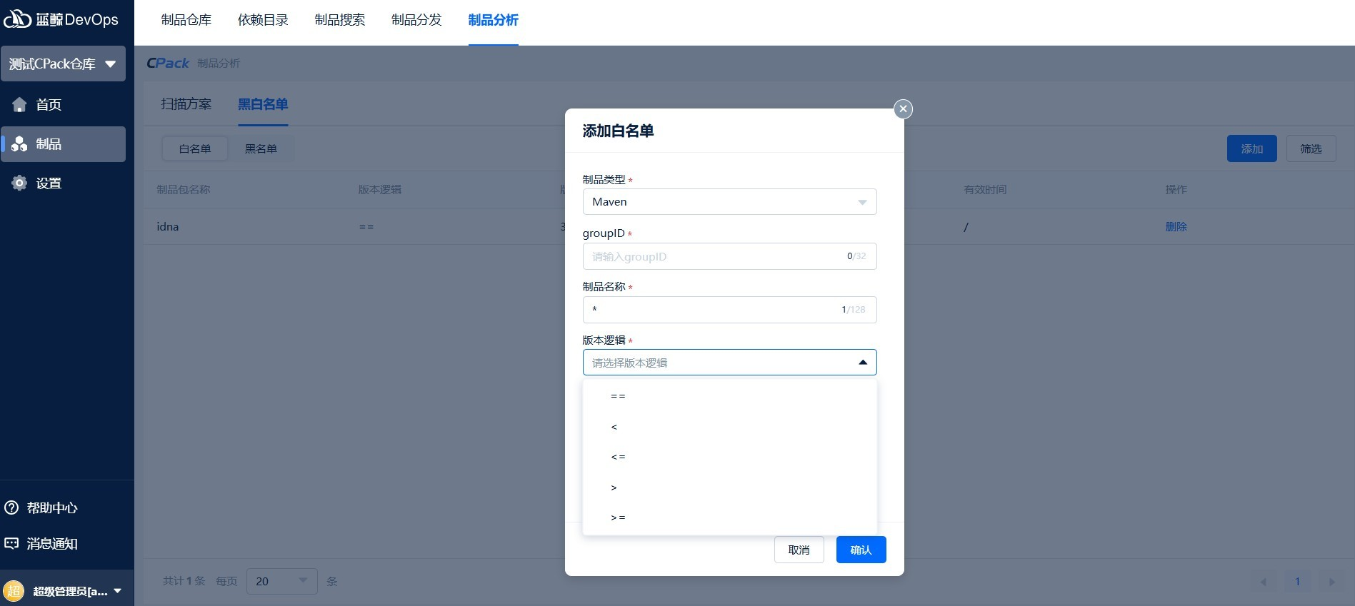 制品扫描支持漏洞和制品黑白名单管理,按版本区间和有效期精准控制扫描与禁用制品,提升安全管控效果。
