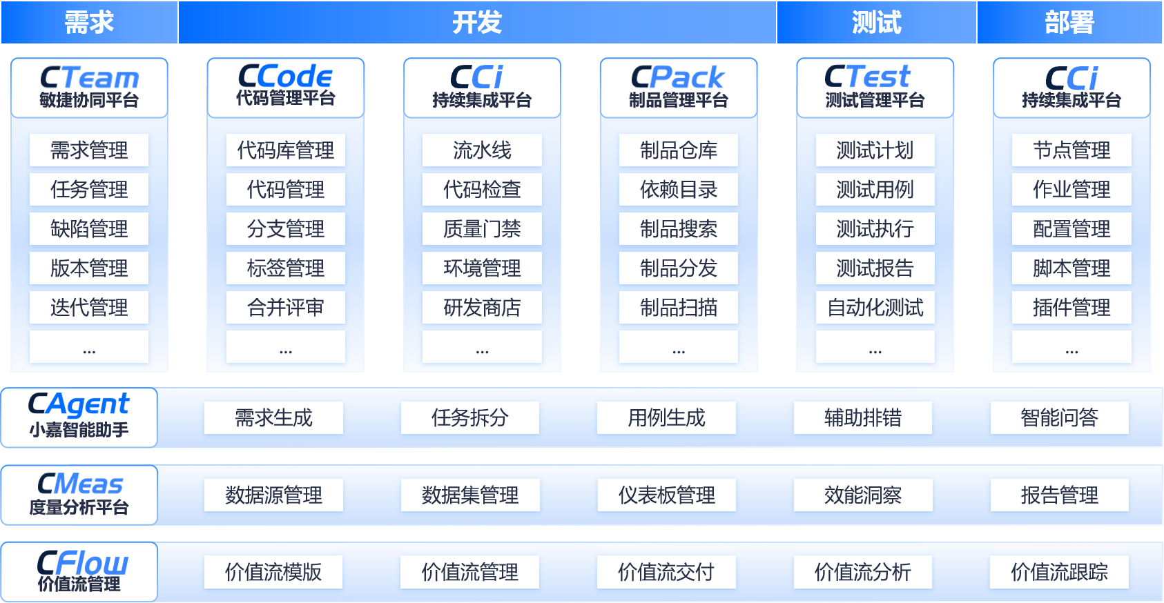 在研发效能领域,嘉为蓝鲸DevOps一站式研发效能解决方案以“全流程自动化+可视化管控”为核心,构建起覆盖研发全生命周期的一体化能力矩阵。